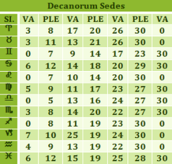 La idea básica consiste en que cada signo posee tres decanos o Faces, pero dichos decanos no dotan de poder a un planeta en su totalidad de grados sino sólo en algunos de los 10 que pose. Los grados a los que se refiere Fírmico son denominados como grados llenos o vacíos y en la tradición trascendieron con otros nombres y nomenclaturas.