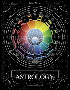 Da carta astrológica de Júlio Verne tiramos os seguintes elementos: signo solar Aquário, signo lunar Escorpião, signo ascendente Gêmeos, Meio do Céu em Aquário, cabeça do dragão em Balança, Plutão em Carneiro, Saturno retrógrado em Caranguejo, Netuno em oposição a Saturno, Lua em conjunção com Júpiter. Mas o que é que tudo isto significa do ponto de vista da Astronomia?!