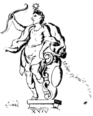 La cuarta imagen estaba dedicada al planeta Sol, imagen de un joven hermoso, con el mote: Meliori splendet in orbe. Se quería indicar que este astro al ponerse se hizo patente a los que habitan el otro medio mundo, ya que cuando anochece para unos, amanece para los otros. Luis I al morir escondió su luz a la observación de sus vasallos, pero su luz brilló más en el hemisferio dichoso de la gloria.