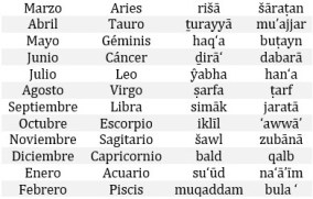 Y ésta es la manera de conocer el signo zodiacal o la mansión lunar en la que se encuentra la luna: Debes saber, ¡Dios nos ayude a cumplir con Su obediencia y a comprender Sus secretos y Sus nombres!, que la luna se aloja cada día y noche en una mansión lunar. Cuando quieras saber en cuál se encuentra, pues cuenta los días transcurridos del mes árabe en el que estés y los días transcurridos del año. Después […], que es lo que se denomina la base (al-’as). Contarás cuánto es el total e irás restando de cinco en cinco hasta que te queden cinco o un número inferior. Con ese resultado contarás desde la primera de las constelaciones zodiacales, y en el lugar en el que se acaba la cuenta, pues en esa misma constelación zodiacal estará la luna.
