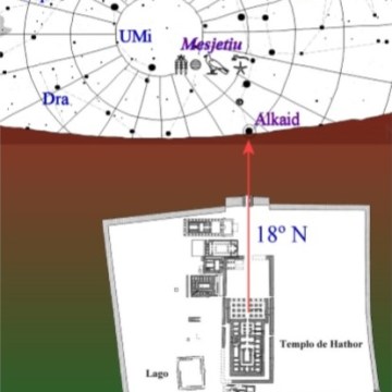 ‘Figura 4 El templo de Hathor en Dendera está alineado al orto de la estrela Alkaid, según podia verse a mediados del siglo I a.C.’
