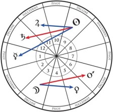 O mesmo argumento é verdadeiro para Marte. Se Marte está posicionado na sexta casa, então ele seria um planeta noturno que recentemente trocou de hemisférios, tendo recentemente deixado de estar acima do horizonte após ter passado pelo grau do descendente na casa 7. Mais uma vez, usando a lógica naturalista de Ptolomeu para deixar claro o ponto, podemos dizer que, simbolicamente, Marte está firmemente colocado no campo noturno, já que está debaixo da Terra; no entanto, como ele só recentemente saiu do lado quente, claro e diurno do cosmos e entrou no lado escuro, frio e noturno, ele ainda está no processo de se tornar mais noturno e muitas das qualidades diurnas ainda estão proeminentes nele.