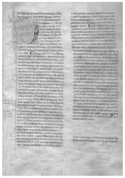 La obra (fig. 10), además de su contenido, aportaba una contextualización didáctica (consejos de Aristóteles a su discípulo Alejandro) que auguraba gran éxito en una época cuando empezaban a ser populares los preceptos para príncipes. Todas las versiones conocidas de esta obra remontan a un original árabe, el Kitâb Sirr al- ‘asrâr del siglo X (941) que se presenta como traducción del griego al siriaco y de éste al árabe por el traductor del siglo IX Yahyâ ibn al-Bitrîq. Adopta la forma de carta de Aristóteles a Alejandro durante la conquista de Persia y es una enciclopedia en la que se han introducido capítulos de astrología, fisiognomía, alquima y medicina mágica. La traducción más antigua a lengua romance es la