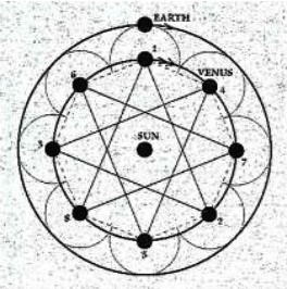 As posições de Vênus no dia de Ano Novo (ou em qualquer outro) ao longo de oito anos formam um octograma. para cada oito vezes que a Terra gira em torno do Sol, Vênus gira treze vezes. Nesses oito anos ela desenha um pentagrama.