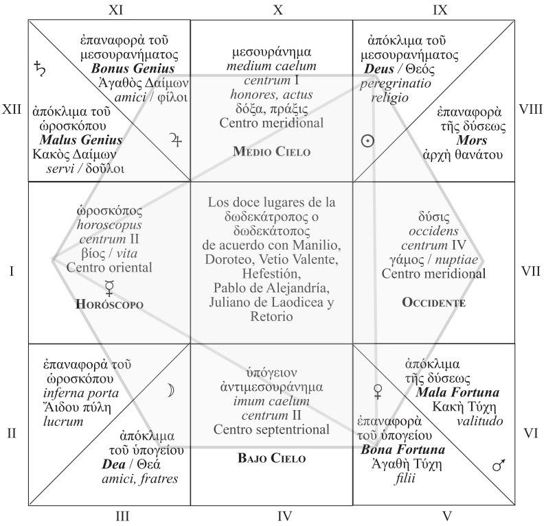 Fig. 10. Dodecátropos. Lugares positivos en triplicidad y sextil con el horóscopo.