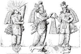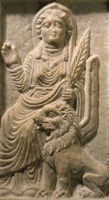 Baalshamin, mestre dos céus, a sua direita o deus lunar Aglibol e o deus solar Malakbel.