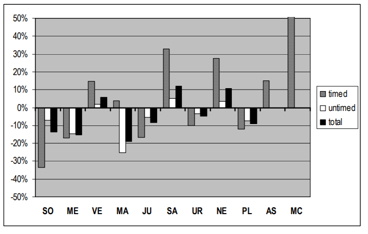 Figure 12. Total de aspecto da lua (orbes largas) plotados como desvio percentual das expectativas teóricas derivadas do grupo de controle (Ctrl1).