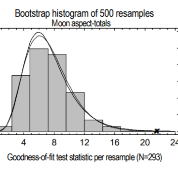 Figura 11. Histograma de valores de qualidade de ajuste qui-quadrado para dados correlacionados (total de aspecto da lua) (Ctrl1).