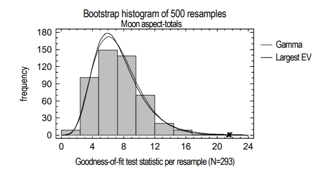 Figura 11. Histograma de valores de qualidade de ajuste qui-quadrado para dados correlacionados (total de aspecto da lua) (Ctrl1).