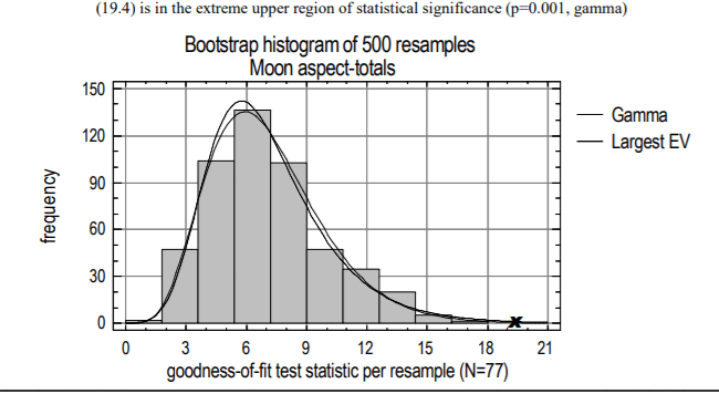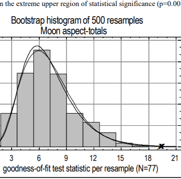 Figura 4. Histograma de valores de ajuste do qui-quadrado para dados correlacionados (totais de aspecto da lua) (Ctrl1).