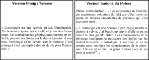Graças a um serviço de empréstimo entre bibliotecas, em dezembro 2001, finalmente consegui colocar as mãos no Astrologie moderne de Hirsig (1950) para ver que este era realmente o modelo que tinha sido usado para desenvolver o Manuel d’astrologie. As diferenças com a reedição de 1965 publicado com o título de Manuel d’astrologie, que pude consultar na biblioteca e o de 1970, do qual tenho uma cópia, são de fato muito pequenas. Os dois trabalhos apresentam o mesmo índice e a paginação do original foi mantida. Um quadro sobre “as quatro principais divisões do mapa celeste” provavelmente preparado na máquina de escrever para a edição original é reproduzido como está na página 191. O livro de 1950 não contém qualquer alusão a Albert Einstein; inclui um prefácio de Georges Barbarin que é substituído nas edições canadenses por um prefácio do autor Hirsig, seguido por um preâmbulo também do autor, na qual foi introduzida a “frase de Einstein“. A citação permaneceu em todas as reedições do Manuel d’astrologie.
