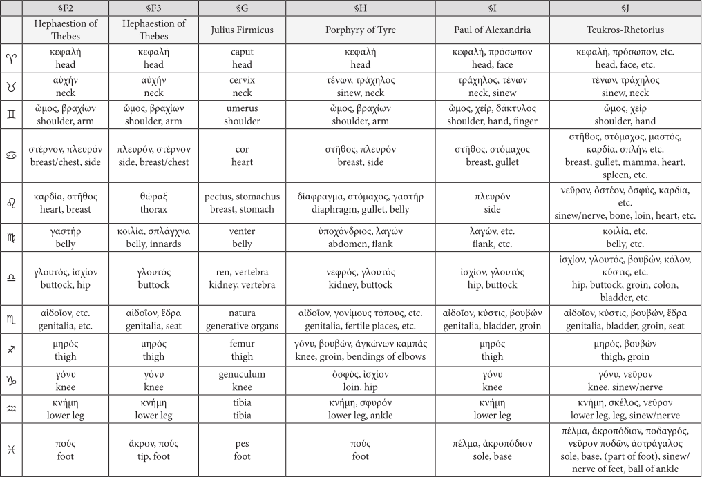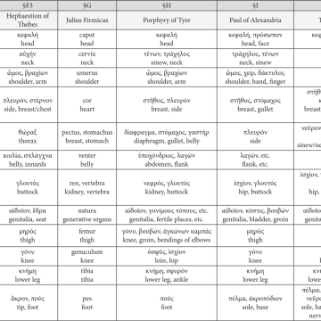 Table 1B. Body vocabulary in BM 56605 and ancient Greek and Roman Sources.