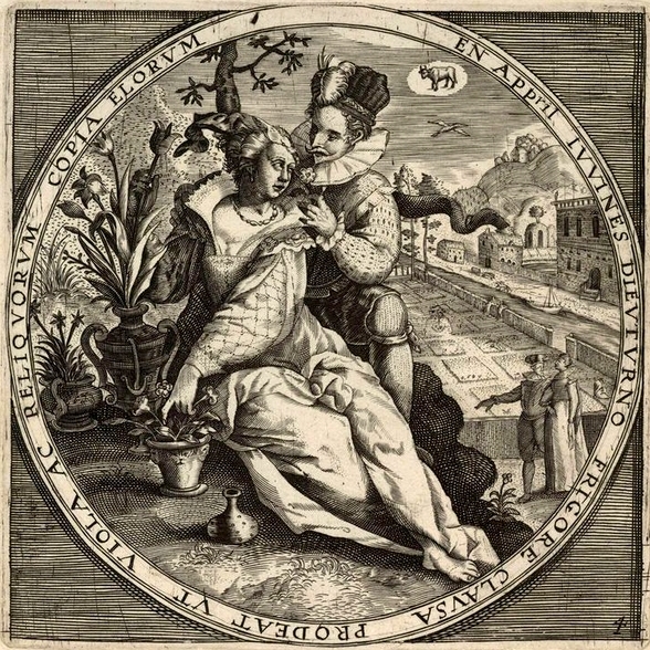 April minnend paar, anonymous, after Maerten de Vos, 1574 – 1687