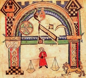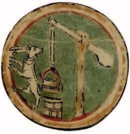O conjunto de medalhões no programa decorativo dos Ashkenazi maḥzorim foi baseado em calendários latinos e livros de rituais cristãos, como saltérios, breviários, e livros de horas. Esses livros geralmente começam com um calendário litúrgico contendo uma lista das festas Temporale e dos Dias dos Santos (Sanctorale) em um ciclo de doze unidades representando os meses e acompanhados por um sistema duplo de medalhões contendo os signos do zodíaco e os trabalhos dos meses. Os ilustradores dos Ashkenazi maḥzorim adotaram o plano do calendário com os signos do zodíaco e, às vezes, também incluíram outro conjunto nos trabalhos dos meses (fig. 5), o que enfatizou ainda mais sua origem nos livros cristãos. A afinidade com os medalhões cristãos também é aparente no desenho iconográfico de alguns dos signos do zodíaco, como o Cordeiro, o primeiro signo do zodíaco do ciclo hebraico, que é desenhado como um carneiro com chifres redondos típicos do signo de Áries, ou Virgem que é representado com uma flor de lis (ou outra flor), alusiva à Virgem Maria, como era comum nos calendários cristãos. Os iluminadores dos maḥzorim retiraram o conjunto de medalhões de sua localização original do calendário no início do livro, colocando-o diretamente como uma ilustração da estrutura dos versos do piyyut para o orvalho, enquanto preservaram os significados dos medalhões como representantes simbólicos dos meses. Em alguns casos, um conjunto semelhante de medalhões também aparece no segundo volume do Maḥzor ilustrando as doze estrofes do piyyut “Ele abrirá a terra para a salvação” (ץרא חתפי עשיל), escrito pelo mesmo poeta para a oração especial para a chuva, que é recitada no último dia de sucot e inaugura a estação do outono. Nesses casos, cada volume tem seu próprio “calendário litúrgico” que enfatiza o ponto de inflexão sazonal relevante e é adornado com algumas conotações zodiológicas populares expressas tanto no conteúdo do piyyut quanto em suas ilustrações. Além disso, como mostrarei, o desenho dos signos do zodíaco aponta para origens diversas que vão muito além do ambiente cristão imediato e mostra claramente que o ciclo dos signos do zodíaco nos Ashkenazi maḥzorim não é uma mera cópia dos calendários cristãos, mas parte de um conceito cosmológico do ano litúrgico judaico.