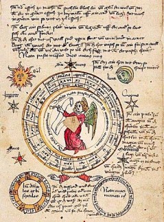 Ptolomeus uir in scientia stellarum peritissimus, exarator ‘Centilogii sui propositione quinquagesima’ […] unde Ptolomeus dicti ‘Centilogii propositione vii sic ait: ‘Sol est origo uirtutis uitalis, Luna est origo uirtutis naturalis, Saturnus est origo uirtutis retentiue, Iupiter uirtutis crescentis, Mercurius uirtutis cogitationis, Mars uirtutis nascendi et attrahendi, Venus uirtutis appetitiue’. Et per consequens eorum opera non poterant sic cum ueritate sciri, licet ad hoc plures actorum dedissent efficacem prout longe ante aduentum Christi fuit Abraxis et paulo post Ptolomeus, ut quidam asserunt rex Egipti et in hac scentia summus, qui super hiis composuit tabulas et uolumina plura. […] Hins ille astrologorum maximus Ptolomeus ‘Quadripartiti sui libro primo capitulo 3º’ sic ait: Dicemus namque, inquid, quoniam si huius sciencie utilitatis quantitatem que ad animam pwrinetconsiderare uelimus’ […].
