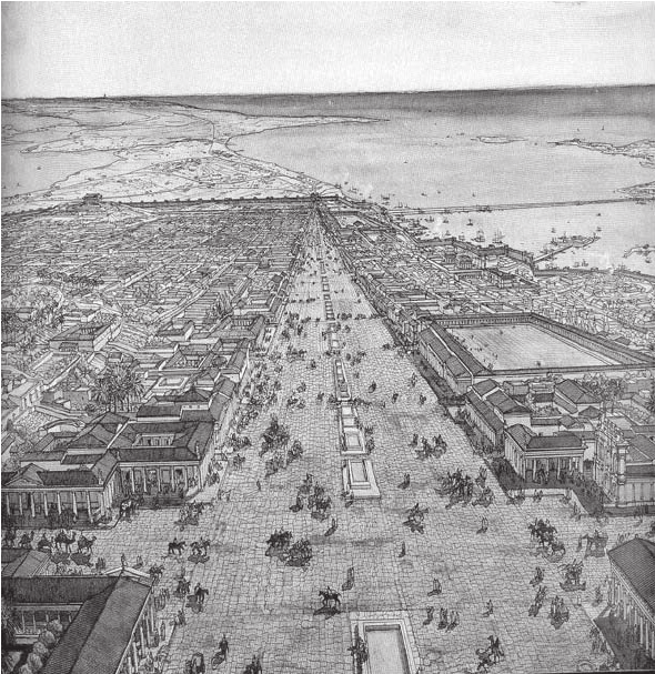 Voltamos então a Ptolomeu, que incluiu inúmeras referências a estudos de fontes babilônicas, incluindo observâncias planetárias “segundo os caldeus” em seu Almagesto, e que fez suas observações, segundo os ensinamentos de Olimpiodoro, em Canopus, onde colocou colunas registrando seus teoremas. De fato, uma cópia das inscrições nestas colunas – datadas da época de Antonino Pio (século II) – sobreviveu por tempo suficiente para ser registrada em manuscritos da obra de Ptolomeu, ‘(ΘΕΩ ΣΩΤΗΡΑ ΚΛΑΥΔΙΟΣ ΠΤΟΛΕΜΑΙΟΣ ΑΡΧΑΣ ΚΑΙ ΥΠΟΘΙΣΕΙΣ ΜΑΘΗΜΑΤΙΚΟΣ) ‘Ao Deus Salvador Claudius Ptolomeu Princípios e Hipóteses Matemáticas’. Estrabão atesta este templo de Serápis em Canopus como um lugar onde as pessoas iam para curas e para oráculos; exatamente os benefícios que esperamos de Apolo (como o Sol/Hélios), de acordo com Fílon, que não menciona o deus pelo nome de ‘Serápis/Sárapis‘ de todo, No entanto, se algum culto era ‘astronomicamente amigável’ na região de Alexandria, era o de Serápis: a divindade da fusão Ptolemaica.