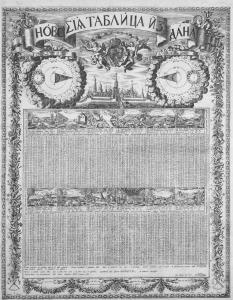 O almanaque de igreja mais proeminente e amplamente distribuído foi o anual Kalendar ili mesiatsoslov produzido pelo Mosteiro das Cavernas de Kiev. A edição de 1717 do calendário continha prognósticos políticos quase semanalmente sobre a Grande Guerra do Norte em andamento travada pela Rússia contra a Suécia. Assim, o calendário prevê que ‘o inimigo [Suécia] vai querer destruir três torres com portões abertos’ em referência à cidade polonesa de Torun. Além disso, o calendário também estava repleto de previsões meteorológicas.