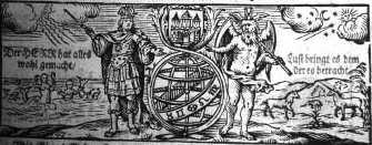 The title page to Johann Heinrich Voigt’s almanac for 1677 (1676) shows his understanding of the relationship between the subjects related to astronomy. A tree constitutes ‘Scientia Realis‘. A device above states that the force of the roots will nourish the fruits. The roots are numerical characters; the main trunk is arithmetic, supporting the two branches, astronomy and geometry. The boughs of astronomy are astrology, optics, gnomonics, music, and the boughs of geometry are stereometry, geography, architecture, and statics. Voigt’s definition of astronomy comprises astrology, optics, gnomonics, and music. The picture makes it obvious that it is necessary to master mathematics to be able to understand all the other subjects. Voigt, being himself an astrologer, wrote in the introduction of the almanac that while the astronomer observes and calculates positions, the astrologer explains and uses the past to try to make reasonable suppositions about the future. In order to do so sound knowledge of the basic mathematical skills was needed. (Inga Elmqvist Söderlund – Taking possession of astronomy).