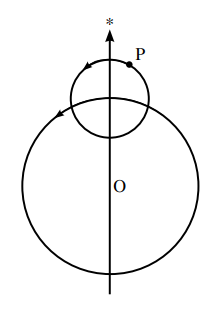 Diagrama circular mostrando o movimento de P ao redor de O.