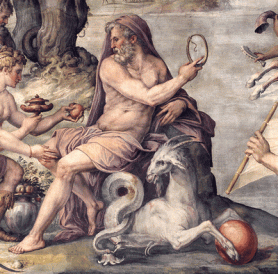 A primeira tentativa de explicação, de acordo com a propensão para as alegorias corrente em seus dias, foi feita pelo escritor romano Macrobius (século V d.C.), que invocou a associação popular de Kronos (Saturno) com Cronos (Tempo):