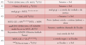 - Tabela 1 – Passagens Cuneiformes associando Saturno como o Sol
