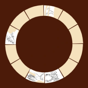 Permitindo uma cunha estreita (2°) de espaço entre as placas, doze delas teria constituído um círculo completo com um diâmetro externo de cerca de 21,5 cm (Figura 8). Pode haver pouca dúvida de que essas placas, cada uma com um símbolo zodiacal, representava o zodíaco grego. Muito provavelmente, eles faziam parte do tabuleiro de um astrólogo.