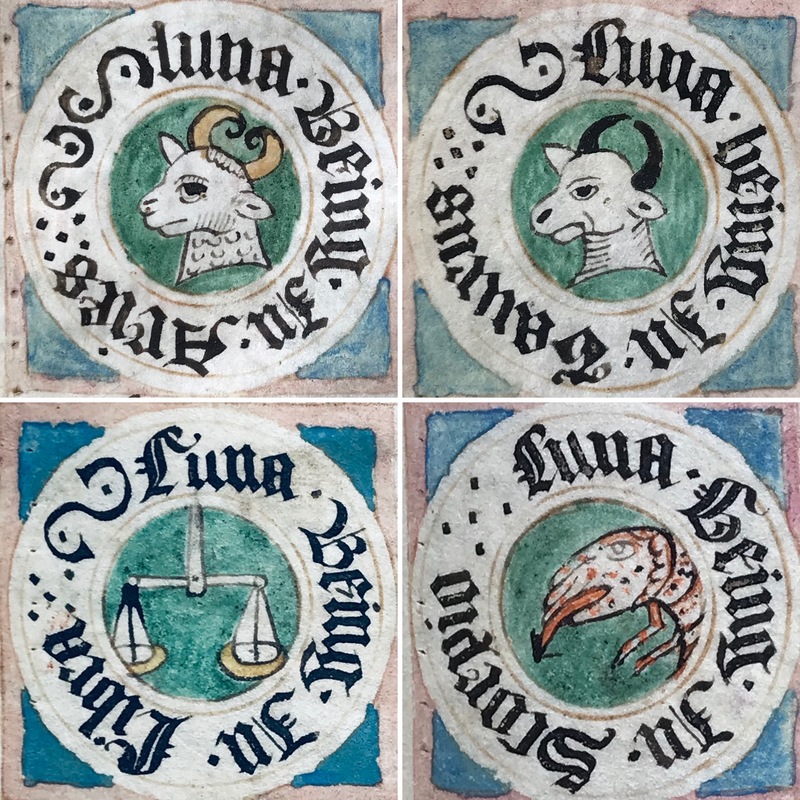 Manuscript image of the Moon in the Signs of the Zodiac Aries, Taurus; Libra, Scorpio 1553.