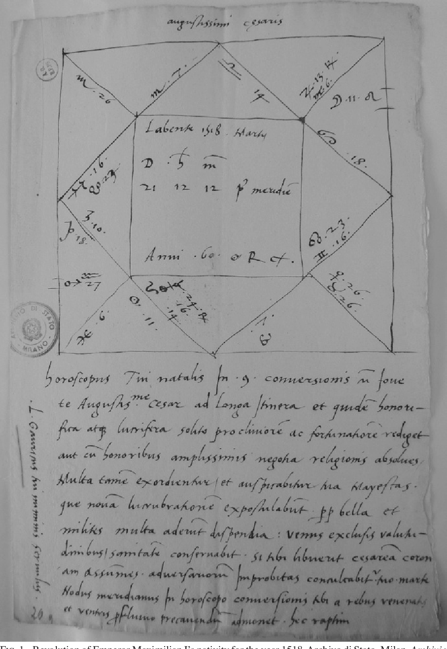 1. Luca Gaurico, Revolution of Maximilian I’s nativity, Archivio di Stato, Milan, Archivio Sforzesco, Miscellanea 1569.