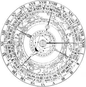 Geralmente nos referíamos a esses mapas, um tanto enganosamente, como “horóscopos”, mas na Renascença seus nomes variaram muito para abranger uma série de práticas diversas e distintas. O nome mais comum usado no Renascimento é provavelmente figura, muitas vezes acompanhado de outros adjetivos ou termos explicativos, mas thema e schema não são incomuns, especialmente no século XVI. Figura coeli, schema coeli / coelicum ou thema coeli / coelicum são, mais uma vez, termos genéricos utilizados para definir um mapa, enquanto figura nativitatis, thema / schema natalis ou genitura já apontam para uma prática específica, ou seja, o lançamento de um gráfico traçando a posição exata dos planetas no momento do nascimento de alguém.5 Este tipo de mapa, indiscutivelmente o mais comum, foi elaborado para oferecer uma interpretação da vida de uma pessoa em sua totalidade e foi muitas vezes (mas nem sempre) acompanhado de interpretações em vários trechos e níveis de detalhes. Outros mapas, que empregavam outras técnicas astrológicas, como revoluções e profecções (as quais mais sucintas), eram frequentemente referidas pelos nomes revolutio (ou, como no exemplo de Gaurico citado acima, conversio) e profectio.6