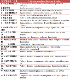 - Tabela 1 – Conteúdos do Tianxue shiyong 天學實用 (Pratica da Astrologia)