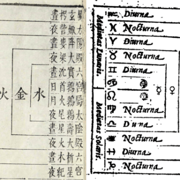 Fig. 1 – Os domicílios dos planetas: esquerda, Tianxue shiyong(p. 21); direita, Isagoge (fol. 43)