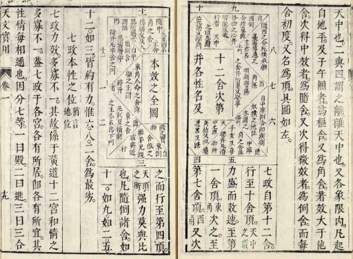 Published 28 de Fevereiro de 2023 at 512 × 376 in O Outro Lado da Astronomia Fig. 2 – As casas astrológicas, Tianxue shiyong 天學實用 (pp. 19-20). ‹ Return to post