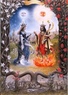 Conforme Ptolomeu, o sol desseca, e a lua umedece; conforme os cabalistas, o sol representa a Justiça rigorosa, e a lua é simpática à Misericórdia. É o sol que forma as tempestades; é a lua que, por uma espécie de branda pressão atmosférica, faz crescer, decrescer e como que respirar o mar. Lemos no Zohar, um dos grandes livros sagrados da Cabala, que “a Serpente mágica, filha do Sol, ia devorar o mundo, quando o Mar, filho da Lua, pôs o pé sobre a sua cabeça e dominou-a”. É por isso que, entre os antigos, Vênus era filha do Mar, como Diana era idêntica à Lua; é por isso que o nome de Maria significa estrela do mar ou sal do mar. É para consagrar este dogma cabalístico nas crenças do vulgo que disseram, em linguagem profética: “É a mulher que deve esmagar a cabeça da serpente”.