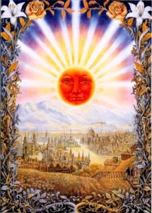 Isto revela a imagem de Hermes enquanto mago ou teurgo, que era característica da época, por seu poder de manipular a magia astral e seu poder legislador , onde suas leis são respeitadas pela eficácia de seu poder mágico. Outra referência do Picatrix afirma que Hermes Trismegistos construiu um templo ao Sol. O Sol é encontrado tanto nos escritos herméticos quanto nos platônicos como referência ao Bem. O Sol é o grande legislador e fonte de toda luz inteligível. Deste modo, a Cidade do Sol recebe este nome, pois está regido sob a égide do sol, o soberano Bem.