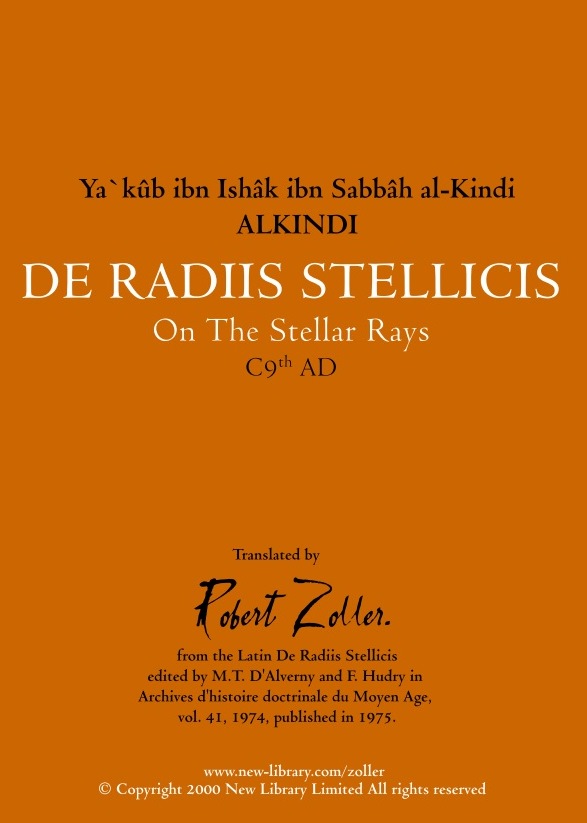 ‘ALKINDI ON THE STELLAR RAYS by robert zoller’