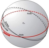 Figura I.3.4 – a eclíptica e a órbita lunar, cuja intersecção define a linha dos nodos lunares