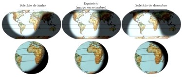 Figura I.3.3 – Efeito da obliquidade da eclíptica: situações de solstícios de dezembro (painel à esquerda) e de junho (painel à direita)