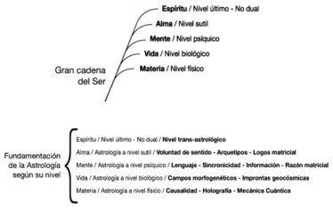 A partir de La Gran Cadena del Ser (la estructura de niveles de realidad definida por la filosofía perenne), podemos desarrollar una estructura con diferentes niveles de fundamentos astrológicos, teniendo en cuenta los niveles de realidad a los que nos referimos. (Figura 3)