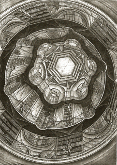 En la techumbre de la habitación, rotaciones celestes, los movimientos de los planetas, las revoluciones perpetuas del cielo, vueltas sin fin. Aunque la pintura estaba estática, parecía estar girando. Tal era la habilidad del artista; así dominaba su oficio.