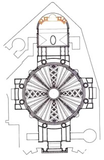 En el arte románico encontramos representaciones diagramáticas del cosmo astronómico que casi siempre incluyen el círculo zodiacal de forma esquemática, de modo que no son útiles para indicar su posición en el firmamento. El zodíaco indicaba, al igual que el mensario, el paso del tiempo, y es por ello que aparece con cierta frecuencia en el arte románico, incluidas no pocas portadas. En algunos monumentos la presencia esquemática de las constelaciones del polo norte celeste ha inducido a pensar en la posible influencia de un planisferio celeste. Por ejemplo, en un mosaico desaparecido de Saint-Remy de Reims un erudito del siglo XVII anotaba la presencia del círculo zodiacal y en el centro del diagrama las constelaciones Osa Mayor y Osa Menor, estas últimas “del mismo que se ven en los globos celestes”, apunta el erudito. Estas versiones simplificadas de un mapa celeste tenían una inveterada tradición. En el centro de uma placa romana del siglo II ó III d.C. conocida como Planisferio Bianchini (hoy en el Museo del Louvre) se hallan las constelaciones de la serpiente y las dos osas (Draco inter arctos), rodeadas por varios círculos con decoración astronómica, entre ellos el círculo zodiacal. Comparado con esta, la representación de Saint-Remy debe de haber sido más sencilla. Aunque no fuera un esquema muy común, podemos recabar algunos testimonios. Un Mithraeum antiguo de Ponza nos confirma las raíces antiguas del esquema, y en un diagrama del siglo IX procedente de Saint-Germain-de Prés encontramos una disposición idéntica a la escrita para Saint-Remy (fig.13), así que ele artista de Reims debió de disponer de un manuscrito de este tipo como modelo. Incluso, la existencia de otro manuscrito con una disposición similar, pero invertida, apunta a que debió de haber un modelo tipo globo y otro tipo mapa de estos planisferios celestes simplificados (fig.14).