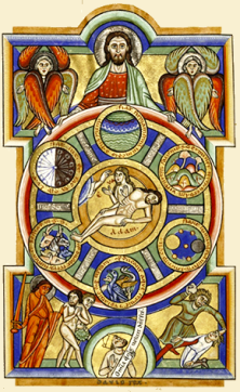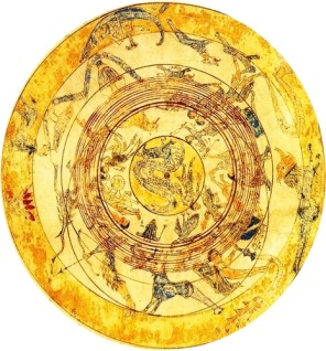 La forma circular del cielo -expresión de la perfección de la obra divina- contiene los signos correspondientes y constelaciones. El nombre de esta forma proviene de los términos «zoe» (vida) y «diakos» (rueda). «El principio elemental de esta «rueda de la vida» se halla en el Ouroboros, o serpiente que se muerde la cola, símbolo de Aion (duración)».