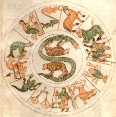 San Isidoro nos da las primeras noticias sobre el zodiaco, haciéndose eco de antiguas tradiciones en sus «Etimologías»: «Del mismo modo, aquellas constelaciones que eran denominadas signos por los gentiles, y en las que habían formado con estrellas la imagen de seres animados, como Arctos, Aries, Tauro, Libra, otros semejantes, quienes contemplaron los astros empujados por una supersticiosa vanidad, los incluyeron entre el número de las estrellas después de dotarlas de figura corporal y de atribuirles, por diferentes motivos la imagen y los nombres de sus dioses». Las estrellas darán nombre a cada signo, pero aparecen junto a ellos en los calendarios medievales. Otros, a su vez, han visto cómo los planetas y los signos influyen en el comportamiento humano. Esto también lo recogen Ptolomeo y el propio San Isidoro, aunque este último lo califica de supersticioso: «Pero es supersticiosa -la astrología- desde el momento en que los astrólogos tratan de encontrar augurios en las estrellas y descubrir qué es lo que los doce signos del zodiaco disponen para el alma o para los miembros del cuerpo».