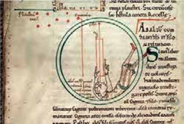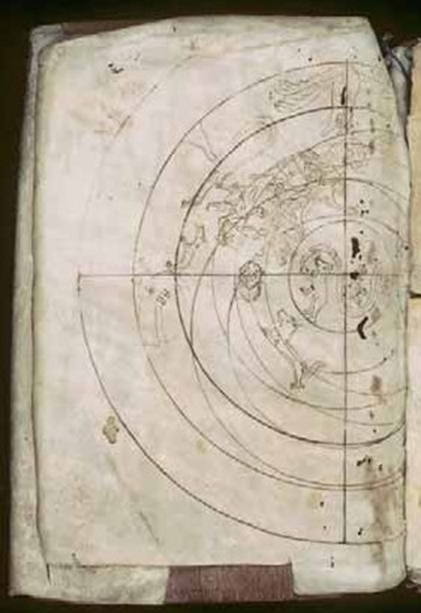 En la época en la que se encuaderna el manuscrito de Orleans que citábamos al principio, seguramente a finales del siglo XIII, el uso de las complicaciones de cómputo monásticas y los planisferios celestes que las adornaban habían pasado de moda, y por ello el incompleto planisferio de Orleans sería desechaco por carecer de interés. Con la creación de las universidades se comenzaría a utilizar manuales como el de Juan de Sacrobosco que haría innecesarias las compilaciones computísticas. Si a ello le sumamos la invención del reloj de escape mecánico a finales de siglo XIII, el interés de estos manuscritos en relación con el tiempo monástico declinaría definitivamente. Los mapas celestes quedarían así pasados de moda hasta que en el siglo XV se descubriera en Sicilia un manuscrito de la Aratea de Germánico con la ilustración de un planisferio celeste. Este mapa “siciliano” del cielo, hoy perdido, se copiaría se copiaría en diversas ocasiones (fig.15), pero sin atención alguna a la posición precisa de las constelaciones, lo que se explica porque el público del siglo XV no estaba ya interesado en las connotaciones computísticas de la posición de las estrellas en el cielo, sino que contemplaba estos mapas celestes como apreciadas reliquias de las imágenes paganas de la Antigüedad.