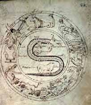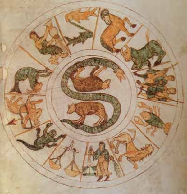 San Isidoro nos da las primeras noticias sobre el zodiaco, haciéndose eco de antiguas tradiciones en sus «Etimologías»: «Del mismo modo, aquellas constelaciones que eran denominadas signos por los gentiles, y en las que habían formado con estrellas la imagen de seres animados, como Arctos, Aries, Tauro, Libra, otros semejantes, quienes contemplaron los astros empujados por una supersticiosa vanidad, los incluyeron entre el número de las estrellas después de dotarlas de figura corporal y de atribuirles, por diferentes motivos la imagen y los nombres de sus dioses». Las estrellas darán nombre a cada signo, pero aparecen junto a ellos en los calendarios medievales. Otros, a su vez, han visto cómo los planetas y los signos influyen en el comportamiento humano. Esto también lo recogen Ptolomeo y el propio San Isidoro, aunque este último lo califica de supersticioso: «Pero es supersticiosa -la astrología- desde el momento en que los astrólogos tratan de encontrar augurios en las estrellas y descubrir qué es lo que los doce signos del zodiaco disponen para el alma o para los miembros del cuerpo».