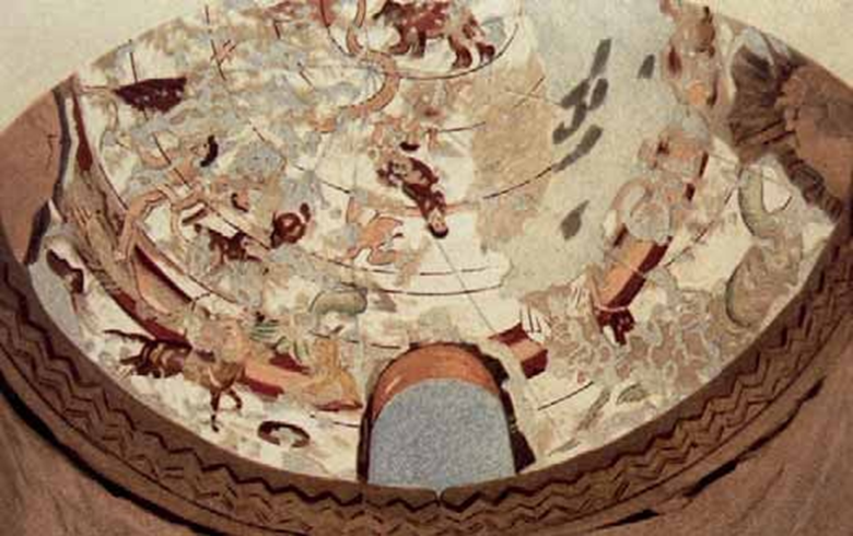 Por último, los mapas del cielo constituyeron en algún caso una fuente de inspiración poética. Es bien sabido que la cúpula celeste poseía un inveterado simbolismo como manifestación del poder universal del soberano. En tal condición se representa en la citada bóveda de Qusayr ‘Amra, y aparece con frecuencia en la literatura y el arte. Recordemos sólo la Domus aurea de Néron o la mención a la tienda de Alejandro en el Libro de Aleixandre. Uno de los textos literarios más interesantes a este respecto denota el uso de un planisferio celeste, y su descripción es tan precisa que incluso se puede deducir el tipo de mapa usado por el autor.