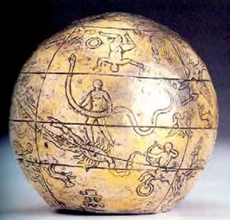 La disparidad de las posiciones de las constelaciones deriva probablemente del hecho de que Arato, en su poema astronómico, al tratar de divulgar los conocimientos astronómicos de su época entre un público menos instruido, describió las constelaciones vistas desde la corteza terrestre, con el fin de que al mirar al firmamento fuesen más fácilmente reconocibles, mientras que la tradición científica las describía como se muestran en un globo celeste. Pero aunque siempre se ha pensado que los globos celestes antiguos debían ser como el globo Farnesio, el único conocido hasta hace unos años, a la luz del reciente descubrimiento del globo de Kugel (fig.7), es plausible que existiera un tipo de globos hechos quizá para clientes nobles, pero con escasos conocimientos astronómicos, que permitieran seguir con más facilidad las descripciones de Arato, ubicando así las figuras, de forma incongruente, como si se vieran desde la corteza terrestre.