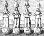 - The spherical fundaments display the alchemical symbols of the four elements.