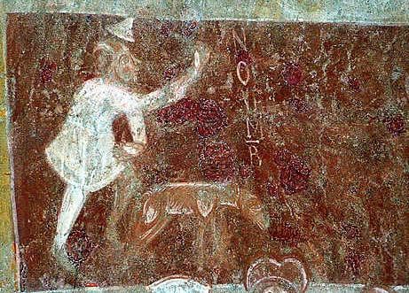 – San Pelayo de Perazancas, Palencia (España), frescos del zócalo del hemiciclo (ca. 1100): restos de un calendario agrícola.