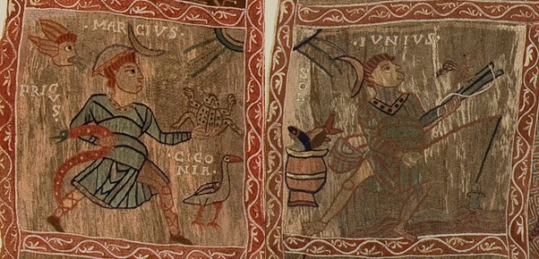 Testimonio excepcional, sobre soporte textil, es el conservado en la orla del Tapiz de la Creación (ca. 1100, Museo de la Catedral de Gerona), con la presencia de los meses asociados a las estaciones del año.