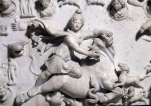 O culto de Mitra, vindo da Pérsia, foi muito difundido no Ocidente pelos soldados romanos. Os seus ritos transformaram a religião do deus numa teologia de Mistérios, onde os rituais iniciáticos tinham um cariz extremamente importante. A data da natividade de Mitra (25 de Dezembro) foi retomada pela natividade de Cristo, ambos nascidos numa gruta. Assim, a gruta ou caverna passaram a ser o local de eleição dos rituais em honra de Mitra. Um deles era a taurobolia, ou sacrifício do touro. Nesse rito iniciático, regido pelos signos do Zodíaco, estavam presentes os símbolos do Sol e da Lua: «a imolação do touro realiza-se na caverna, encontrando-se presentes o Sol e a Lua. A estrutura cósmica do sacrifício é indicada pelos doze signos do zodíaco ou pelos sete planetas e pelos símbolos dos ventos e das quatro estações».8